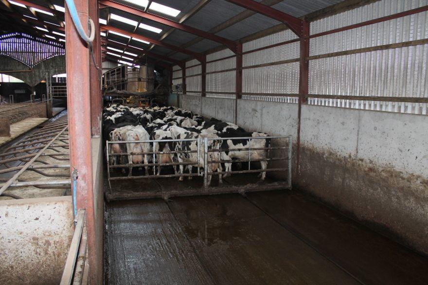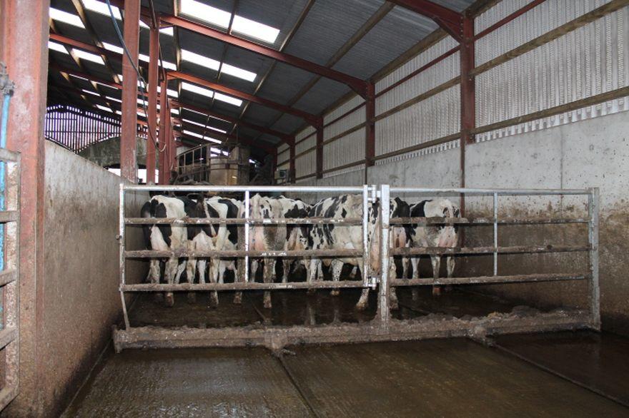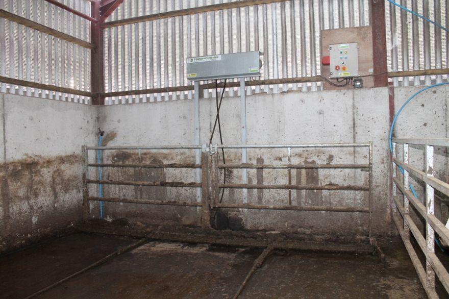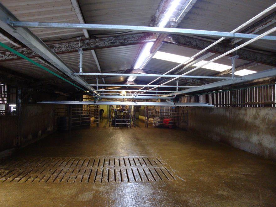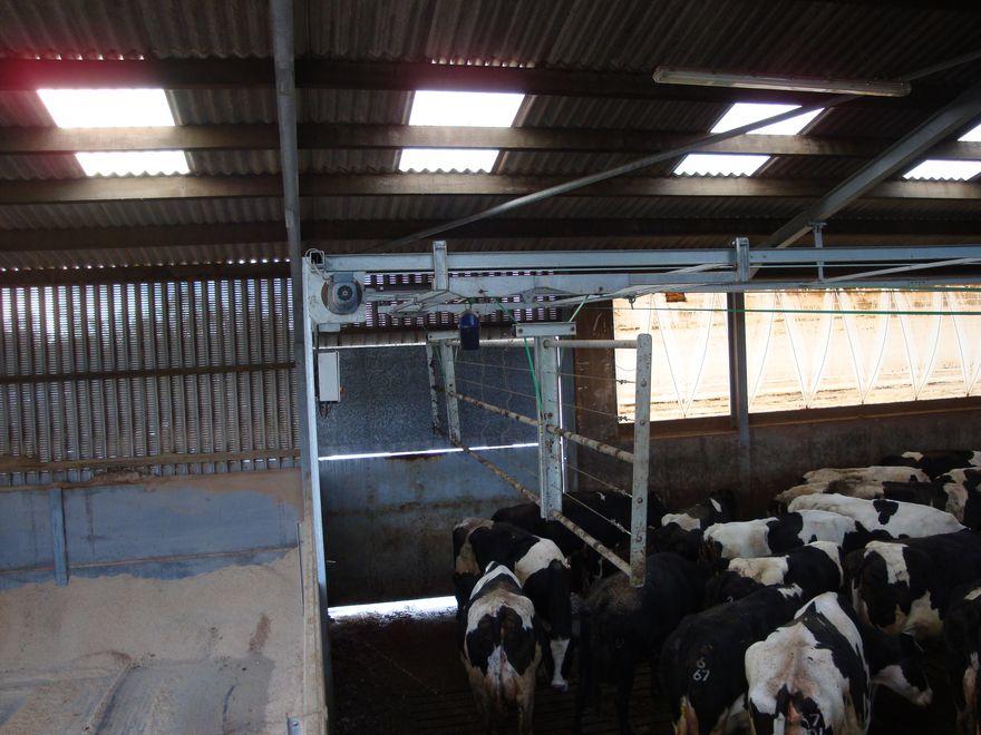 The gate is controlled by means of a simple, robust hand-sized control unit which can be suspended in the pit . Local controls are also mounted on the gate so that the operator has complete control when loading the cows into the yard.