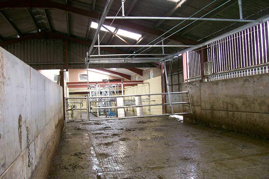 The Cowcare Challenger Backing Gate is custom built to your collecting yard requirements, and can vary in width up to 20 metres. Both gantry and gate are manufactured entirely from steel and are hot-dip galvanised for maximum service life.